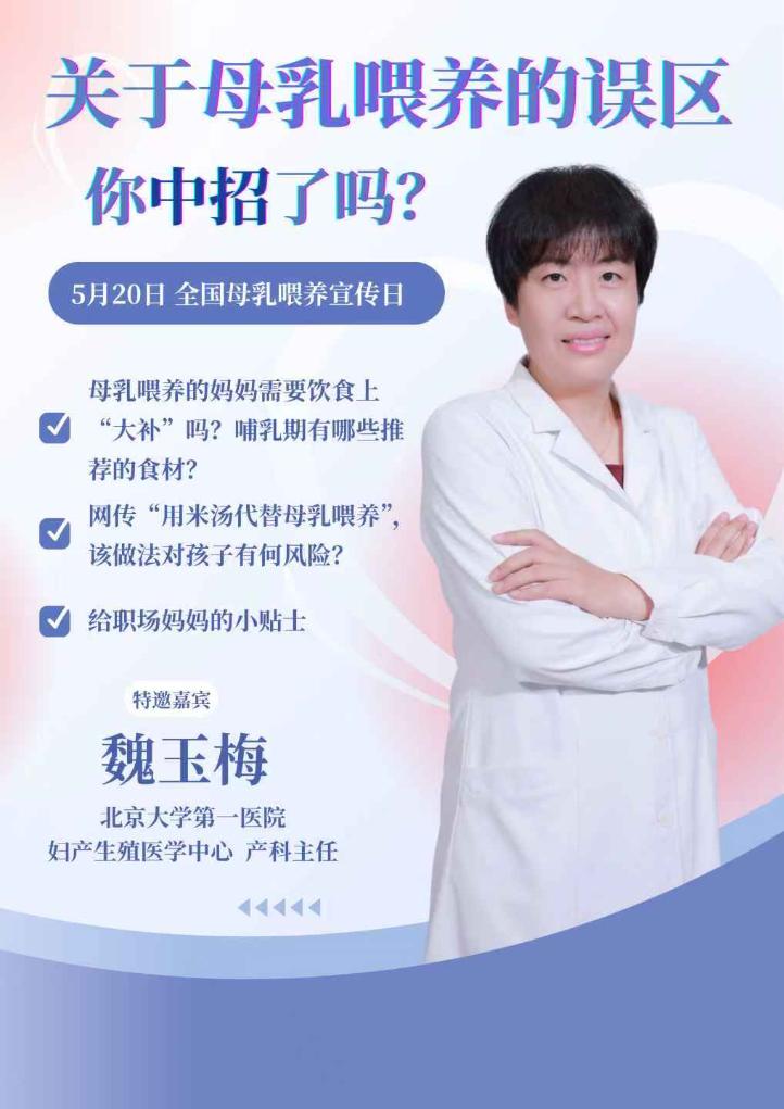 5月20日是全国母乳喂养宣传日,母乳喂养是母婴健康的核心纽带,但在实践中,许多家庭仍面临认知误区。用米汤可代替母乳喂养?母乳喂养的妈妈需要饮食上大补特补吗?本期采访特邀北京大学第一医院妇产生殖医学中心产科主任魏玉梅,深度解析母乳喂养的关键问题。