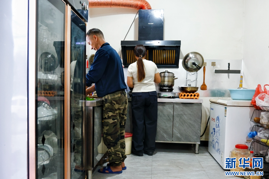 范成锋与妻子在新房里做饭(11月2日摄)。新华网 赵普凡 摄