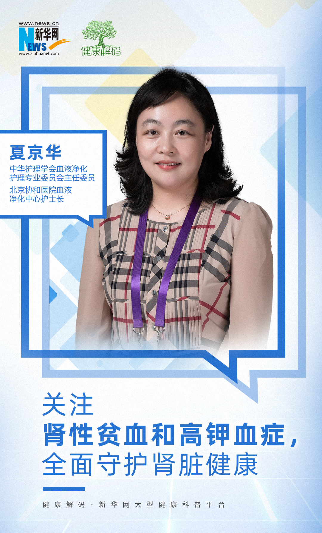 夏京华:慢性肾脏病患者应该遵循医嘱,坚持长期的规范化用药和随访,做好肾性贫血和高钾血症等并发症的监测和管理。我们专科的护士会给予患者多方面的专业指导,让患者掌握自我管理的要点。希望通过我们的共同努力,帮助患者延缓疾病进展,保护肾功能,减少并发症的发生。