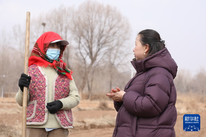 2月19日,在青海省海东市民和回族土族自治县中川乡光明村,农业技术人员(右)在田间进行技术指导。新华社记者王梓涵 摄