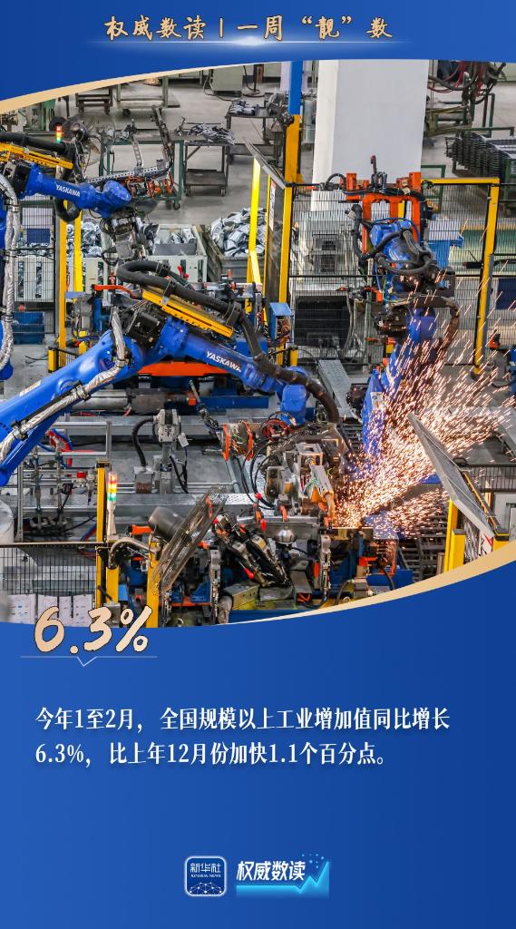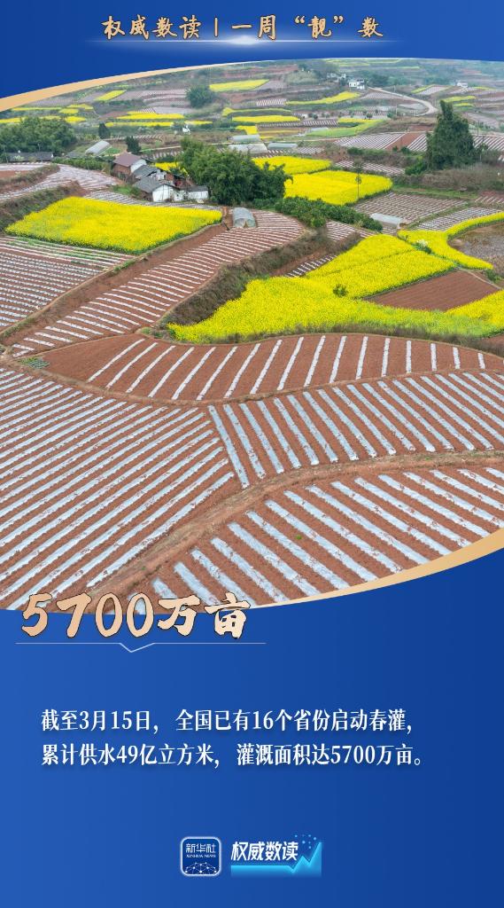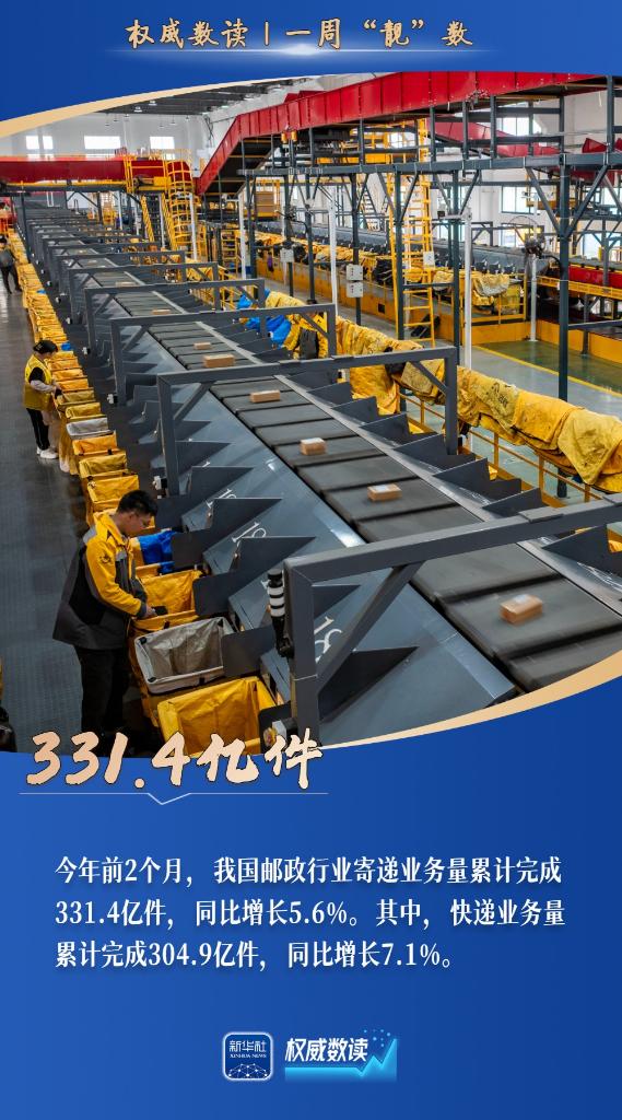 今年前2个月,我国邮政行业寄递业务量累计完成331.4亿件;全国规模以上工业增加值同比增长6.3%;截至3月15日,全国已有16个省份启动春灌,累计供水49亿立方米,灌溉面积达5700万亩……本周,这些数据,最值得关注!