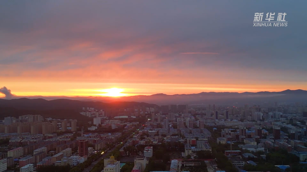 5月30日晨,黑龙江省牡丹江市出现“东边日出西边虹”景观。日出时分,朝霞与彩虹共同出现在天空中,色彩艳丽,景象壮观。