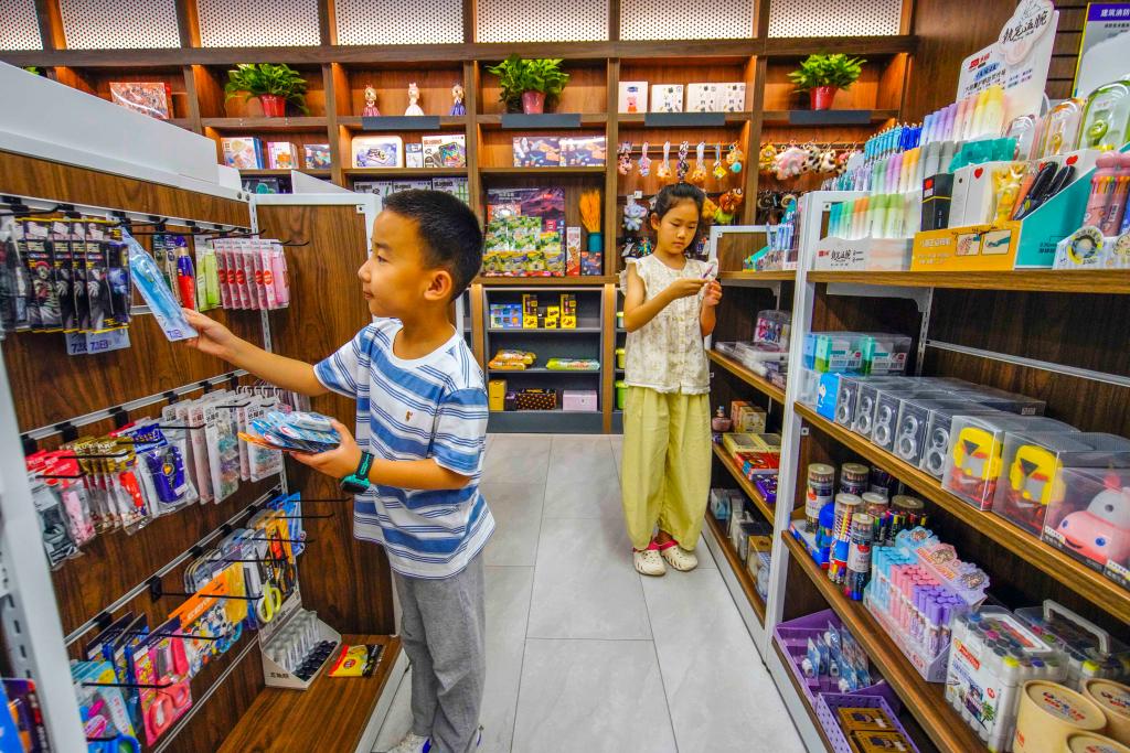河北省遵化市文化路街道的小朋友在文具商店选购学习用品。新华社发(刘满仓 摄)