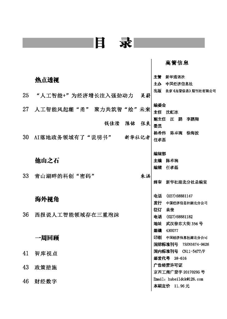 新华社中国经济信息社《高管信息·湖北》第42期看点简报