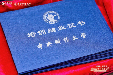 华泰人寿菁英营销员在完成研修课程并通过考核后,将获得由中央财经大学颁发的“培训结业证书”,从而以更加全面系统的金融养老知识,为客户提供定制化、专业化的养老规划。同时,学员们将成为中央财经大学校友会成员,提升自身综合竞争实力。