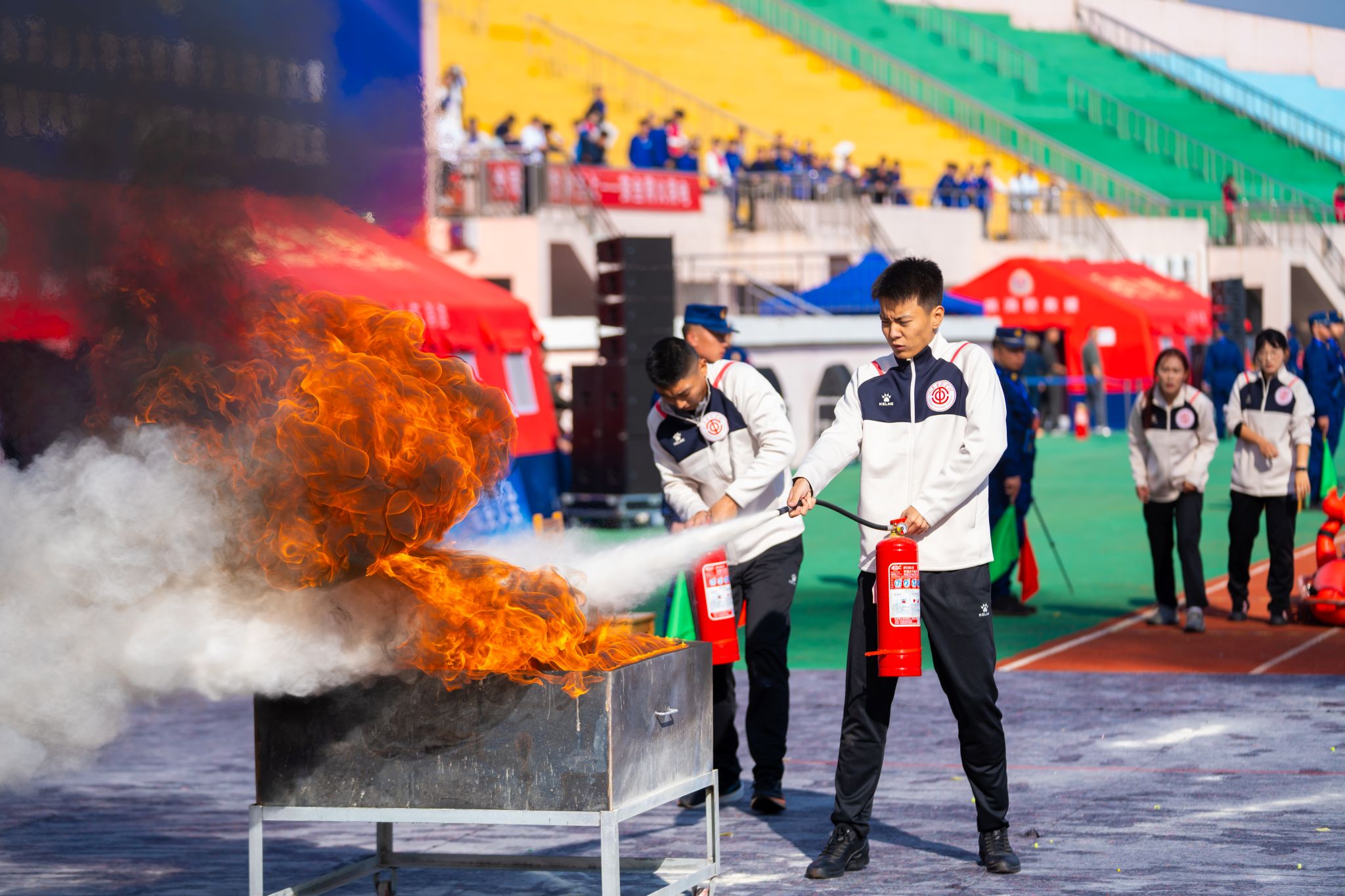 焦培文指出,此次大赛是山东省首次面向大学生举办的专项消防安全技能竞赛,是推动消防宣传“进校园”走深走实的创新举措。他强调,各高校要严格落实消防安全主体责任,紧盯实验室、宿舍、食堂等重点场所,做到问题早发现、早处置,形成管理闭环;要注重实战实训,配齐配强消防器材和训练设施,打造“懂常识、会操作、能处置、善宣传”的专业化师生应急力量;要进一步推动高校与消防救援机构建立深度合作机制,共同构建“人人参与、人人尽责”的校园消防安全共同体。