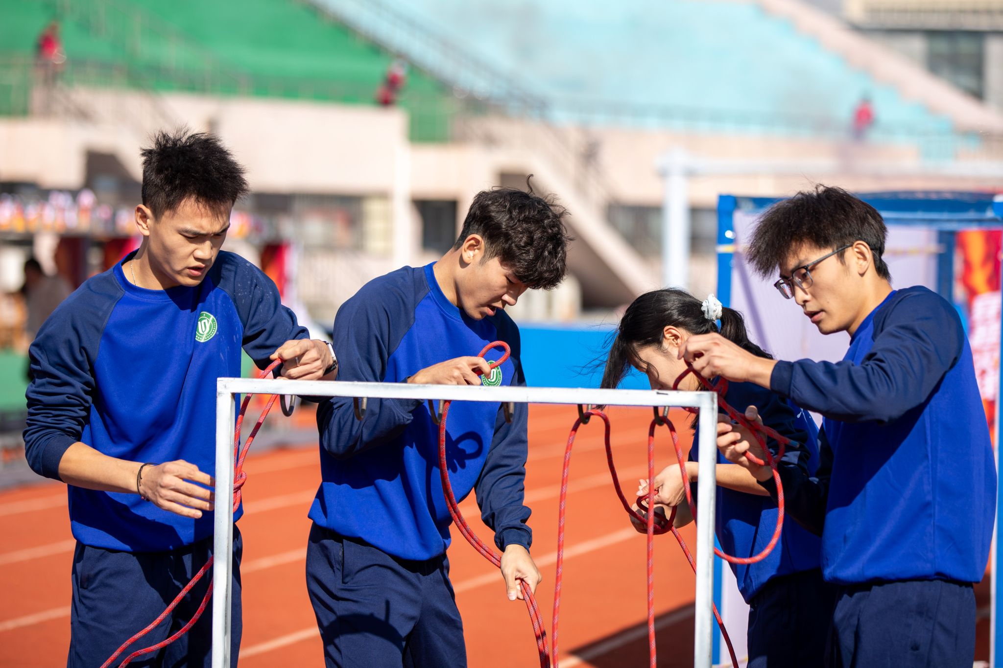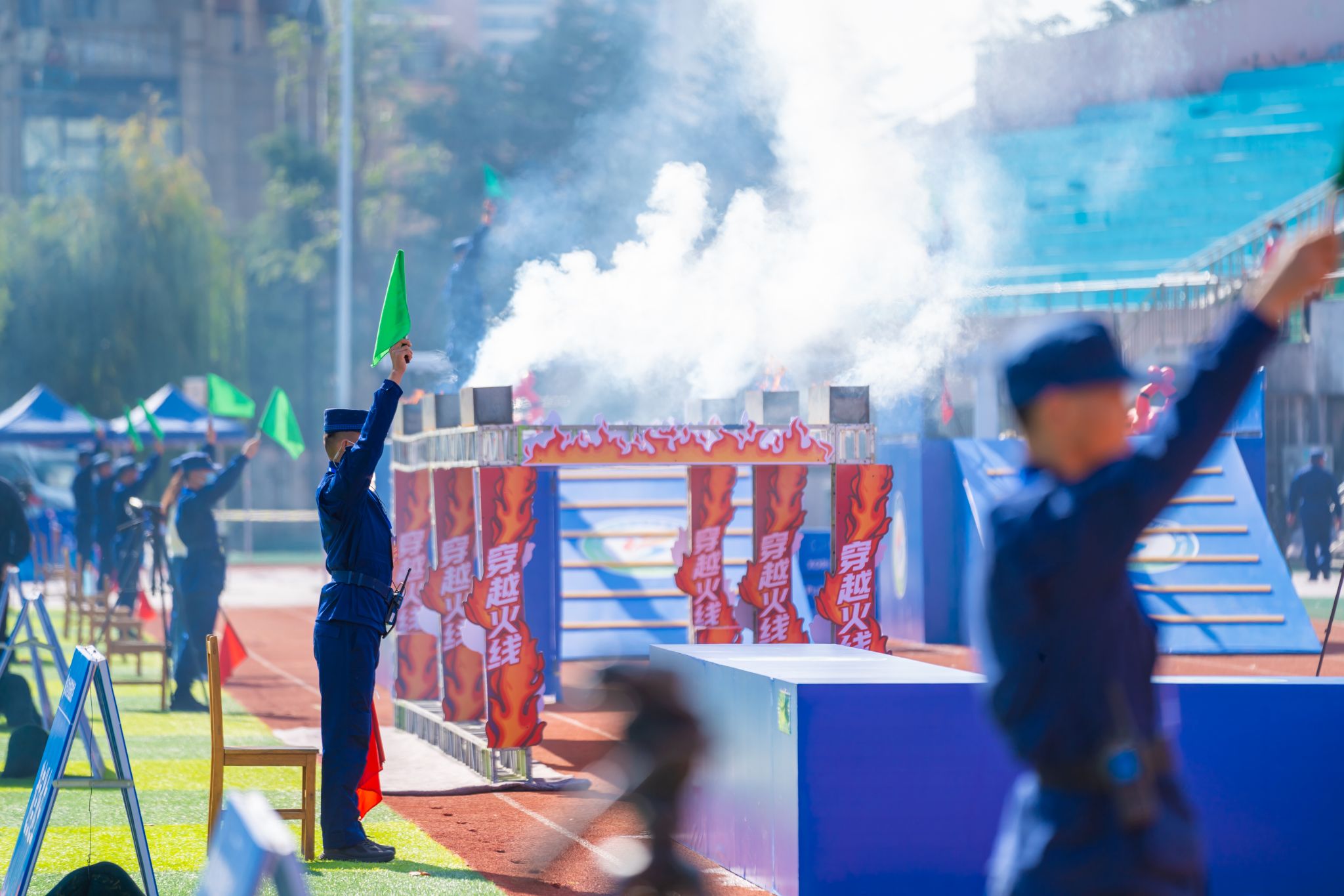 启动仪式后,来自全省49所本科高校、71所高职院校的1200余名参赛选手围绕迷宫逃生、穿越火线、勇者同行、烈焰攻坚等7个消防安全技能项目展开激烈角逐。