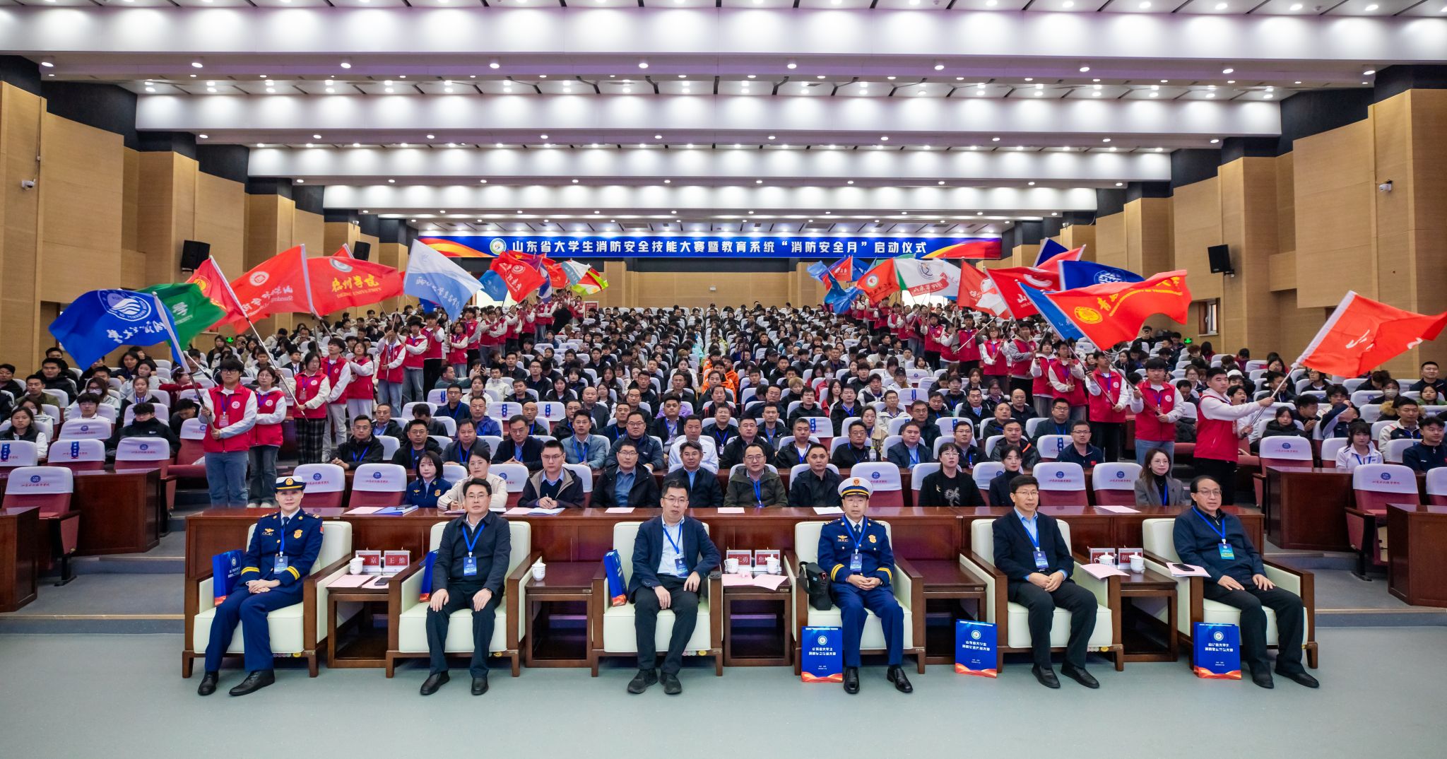 11月5日,山东省首届大学生消防安全技能大赛暨教育系统“消防安全月”活动在山东水利职业学院启幕。省教育厅学校安全管理处处长石仁勇,省消防救援总队一级指挥长焦培文,山东水利职业学院党委书记王维,省消防救援总队新闻宣传处二级督导员陈亮,日照市教育局党组成员、总督学于相春,省教育厅学校安全管理处副处长姜业华,日照市消防救援支队支队长李京,济南大学正处级督导员邱玉敏,山东大学原党委保卫部部长、省高校安全保卫协会理事长胡长玉出席开幕式。省教育厅学校安全管理处一级调研员张嘉峰主持开幕式。