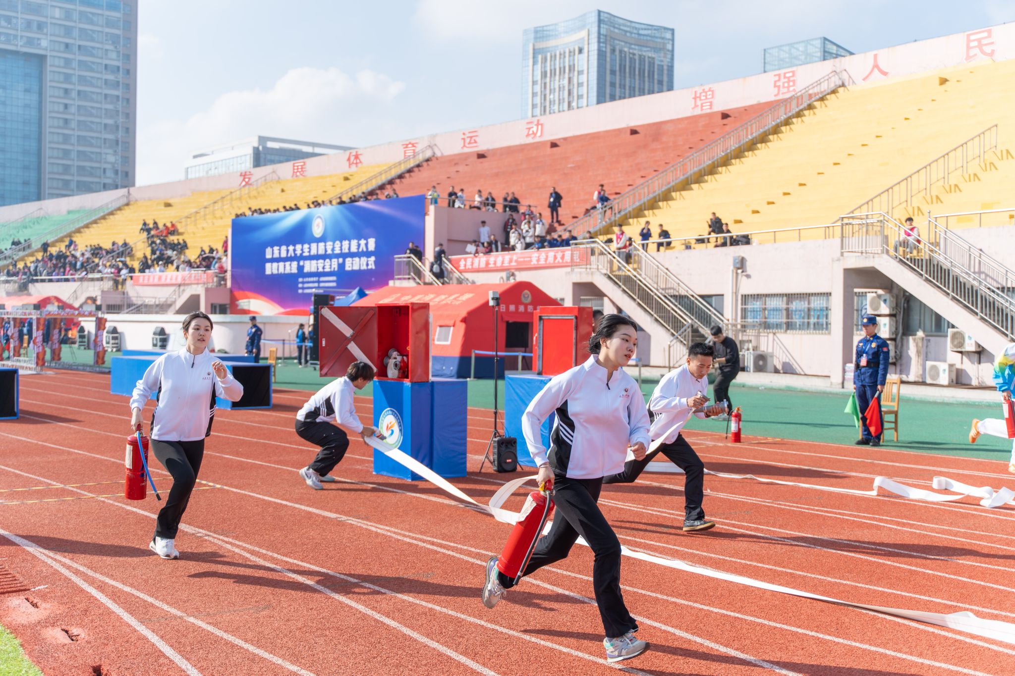 山东省首届大学生消防安全技能大赛以“消防青春志,安全家国行”为主题,旨在为全省高校提供一个“以赛促学、以赛促练、以赛促教”的综合平台,积极推动消防文化融入育人全过程,提升大学生“懂消防、会操作、能应急”综合能力,实现从“要我安全”到“我要安全”的根本转变,夯实高校消防安全防线“最后一公里”。(通讯员:王娜)