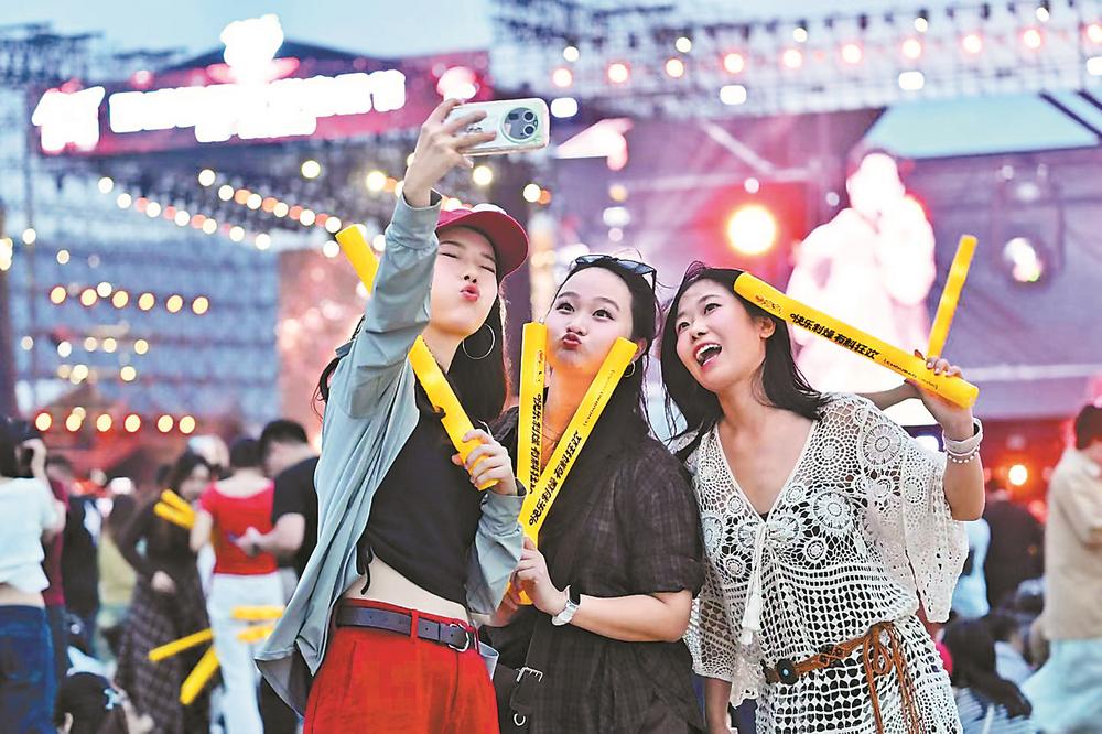 乐迷在银河左岸音乐节现场合影。蔡昊 摄