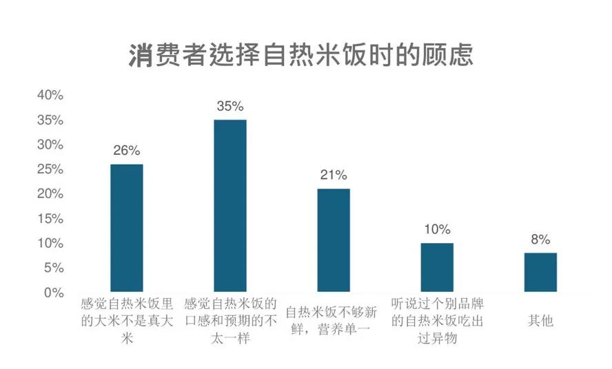 微调查显示,虽然大约70%的受访者基于节省时间或方便快捷的考虑过消费自热米饭,但这些受访者中仍有35%的人担心配料表上标注的各种添加物的安全性。