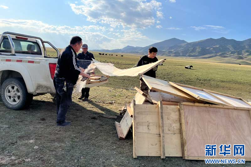 图为别克在赛湖牧区用皮卡帮助牧民搬运木板(中南民族大学供图)