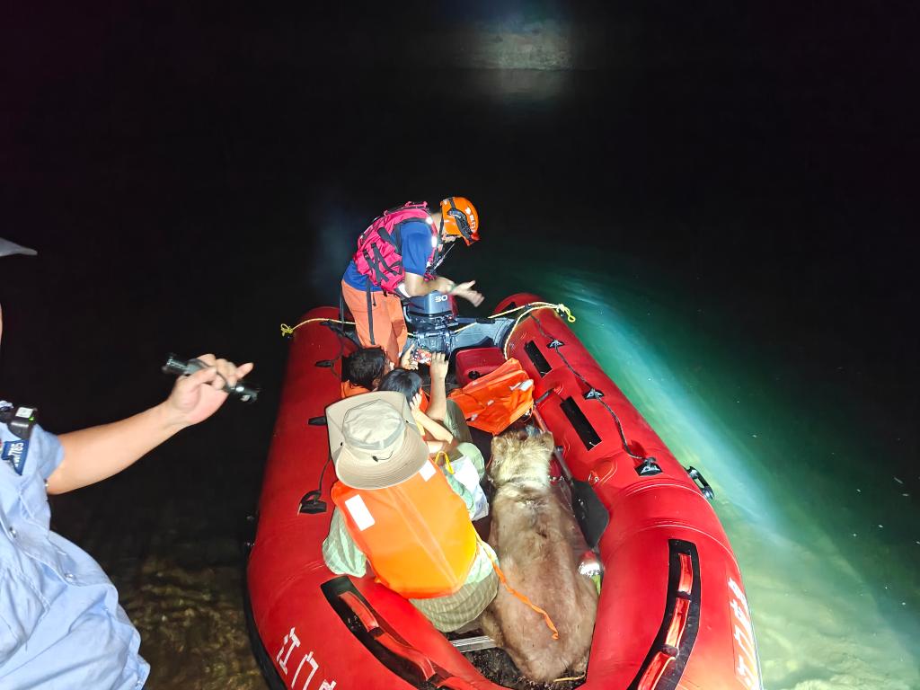 图为8月3日消防队员对江门古兜山野游探险受困人员开展营救。(江门市应急管理局供图)