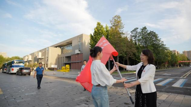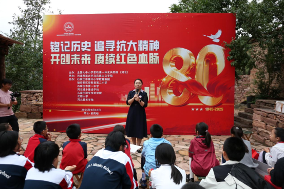 活动伊始,全体师生齐聚河北师范大学四方广场,在河北师范大学马克思主义学院副院长(主持行政工作)路晓峰主持下举行简短而庄重的出征仪式。河北师范大学党委副书记赵小兰出席并作动员讲话,嘱托师生要“用心看、用心听、用心悟”,希望大中小学师生通过参与跨越学段、贯通历史与现实的思政大课,深刻理解抗战岁月的艰苦卓绝和伟大胜利的深远意义,从红色文化中汲取精神力量。赵小兰为实践团队授旗。学生代表郑重发言,承诺将以最饱满的热情投入实践,深刻学习、严肃思考、不负嘱托。
