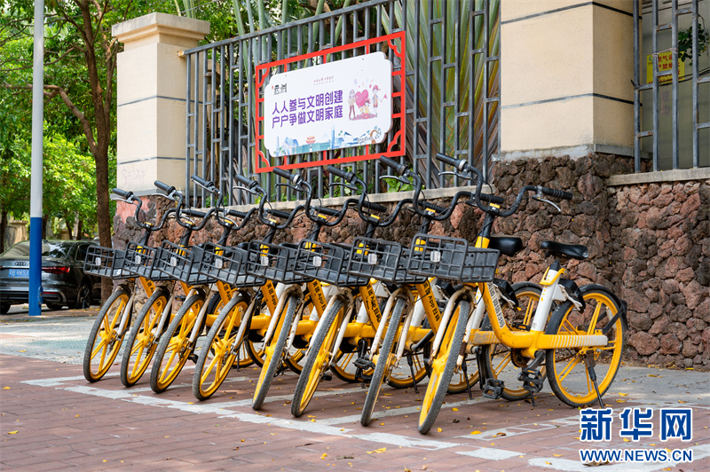 三亚崖州区在辖区内增设的公共自行车站点。新华网发