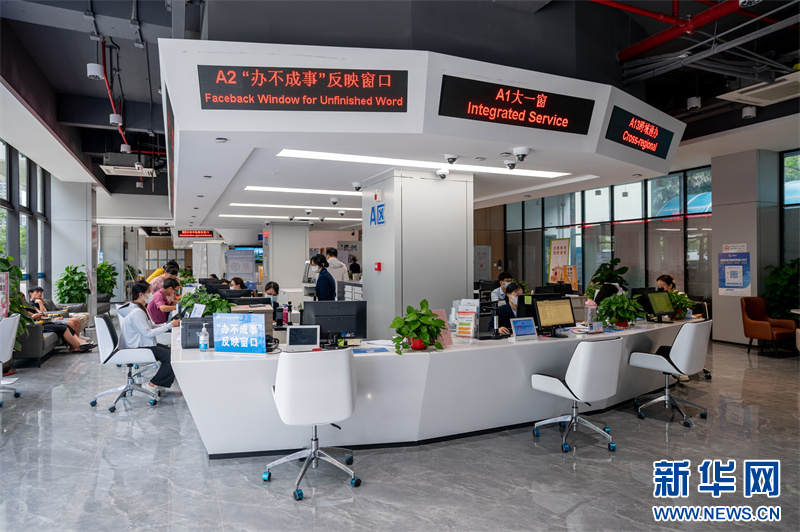 崖州区政务服务中心内,工作人员正在受理业务。新华网发