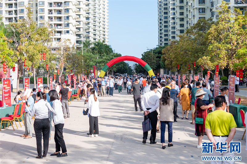 崖州区在辖区内举办的“自贸港乡村振兴”就业系列招聘会现场。新华网发