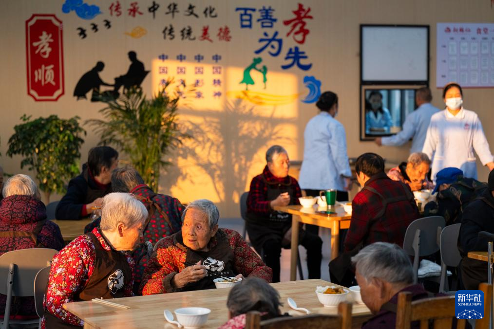 10月14日,老人们在孝昌县王店镇松鹤仁养老院就餐。新华社记者 伍志尊 摄