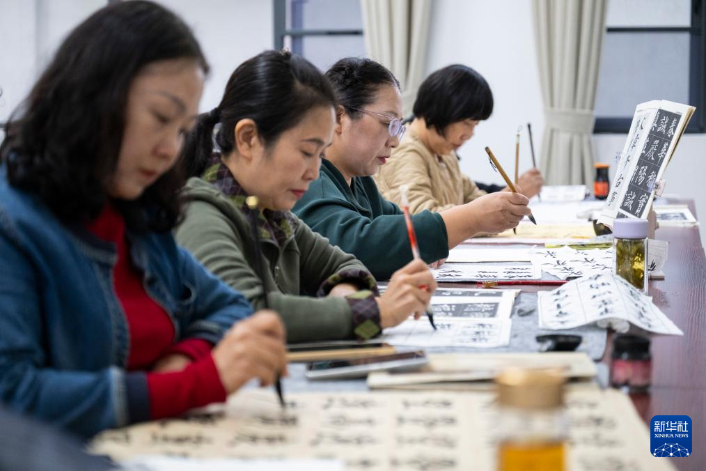 10月15日,学员们在孝昌县老年大学学习书法。新华社记者 伍志尊 摄