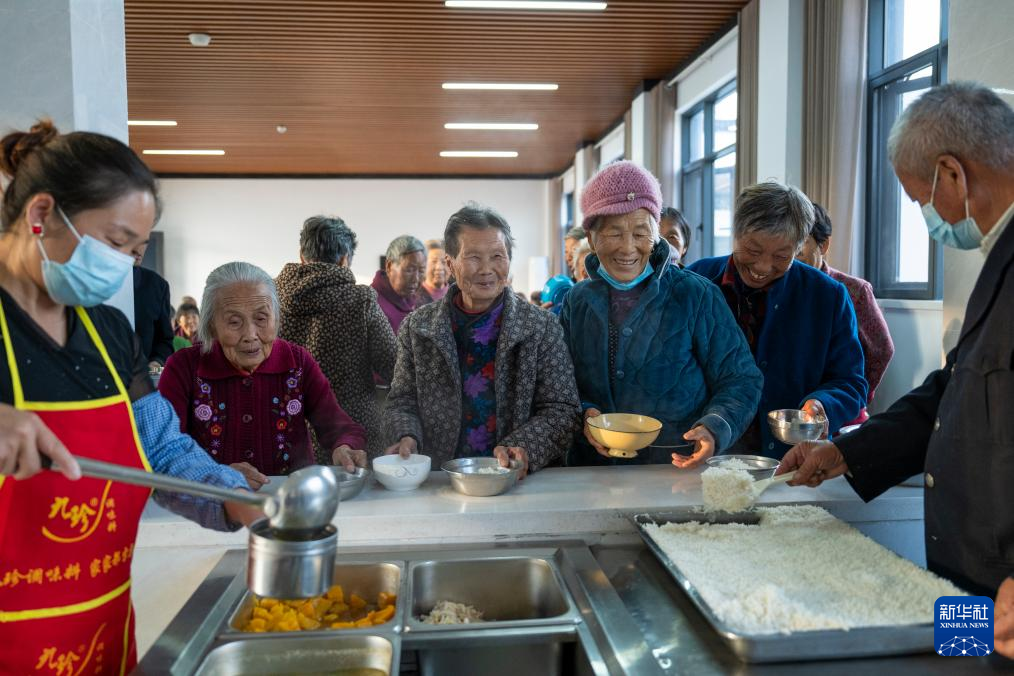 10月14日,老人们在孝昌县王店镇新岗村幸福食堂就餐。新华社记者 伍志尊 摄