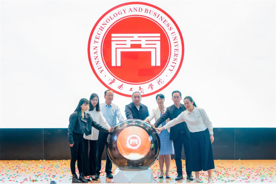 云南工商学院26周年校庆暨新版校徽发布会(6月12日摄)。