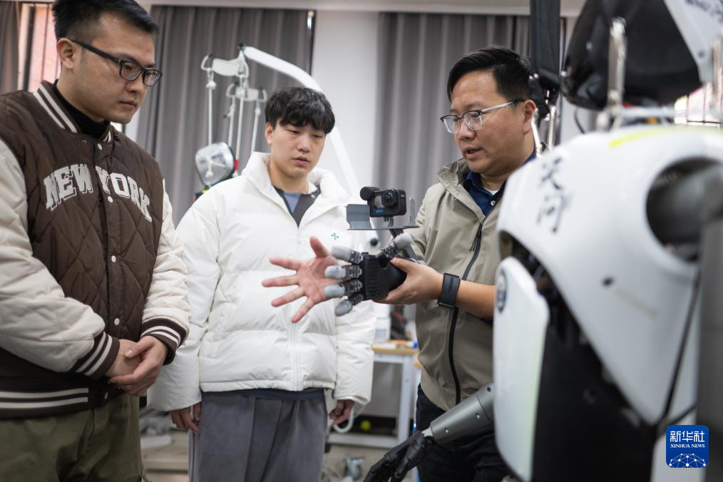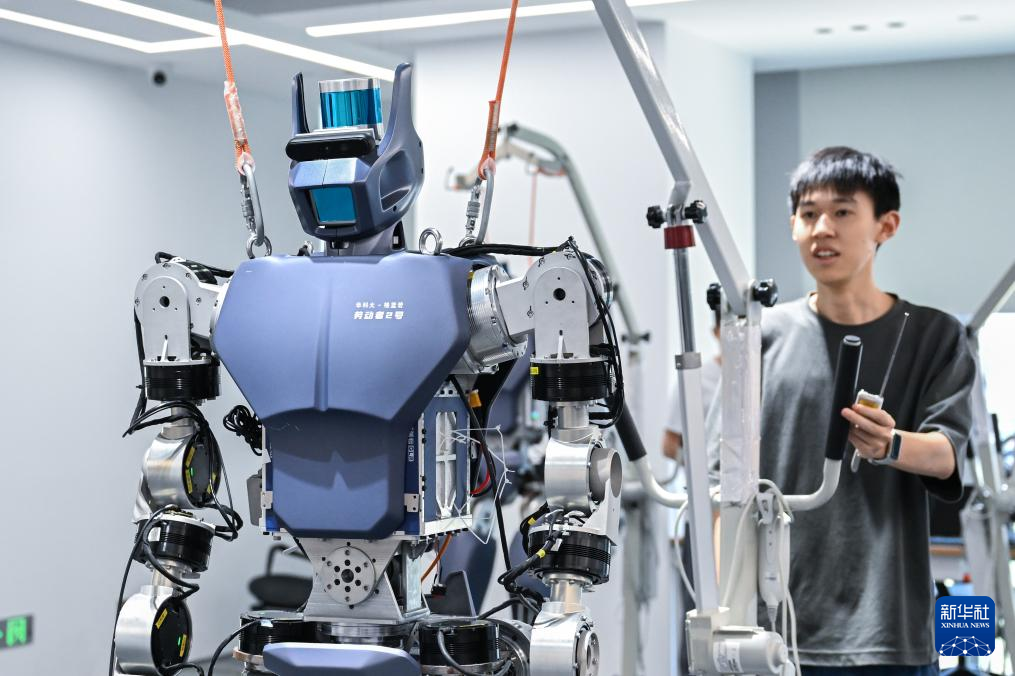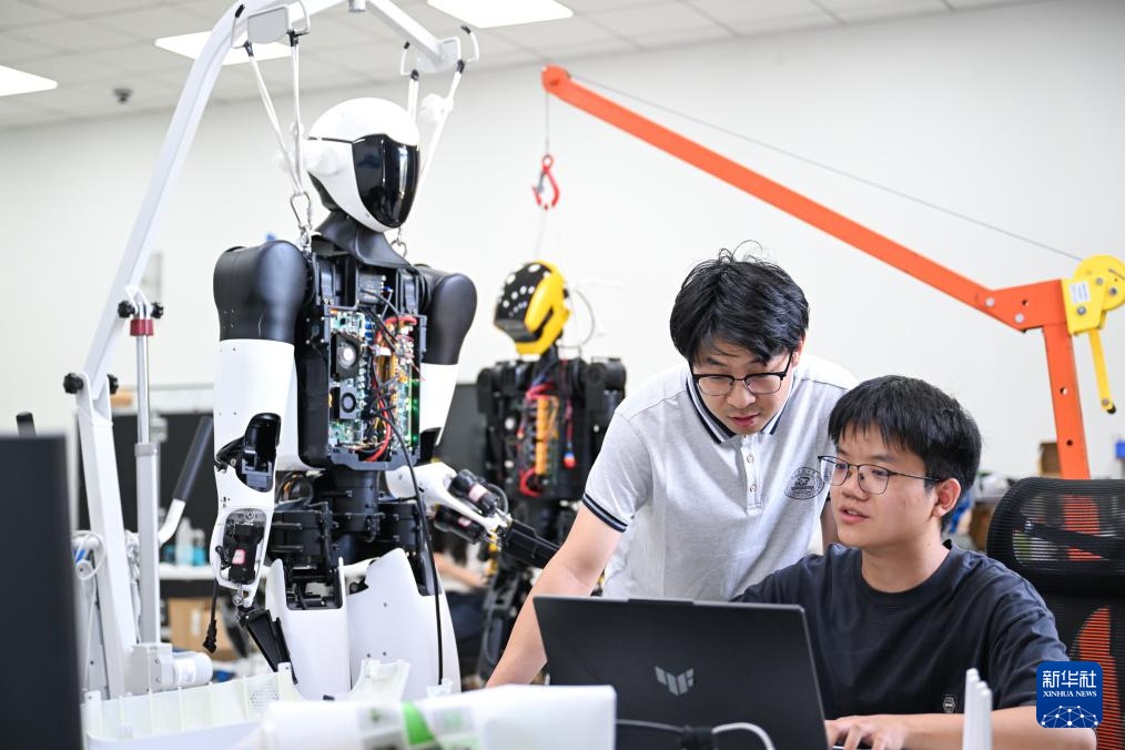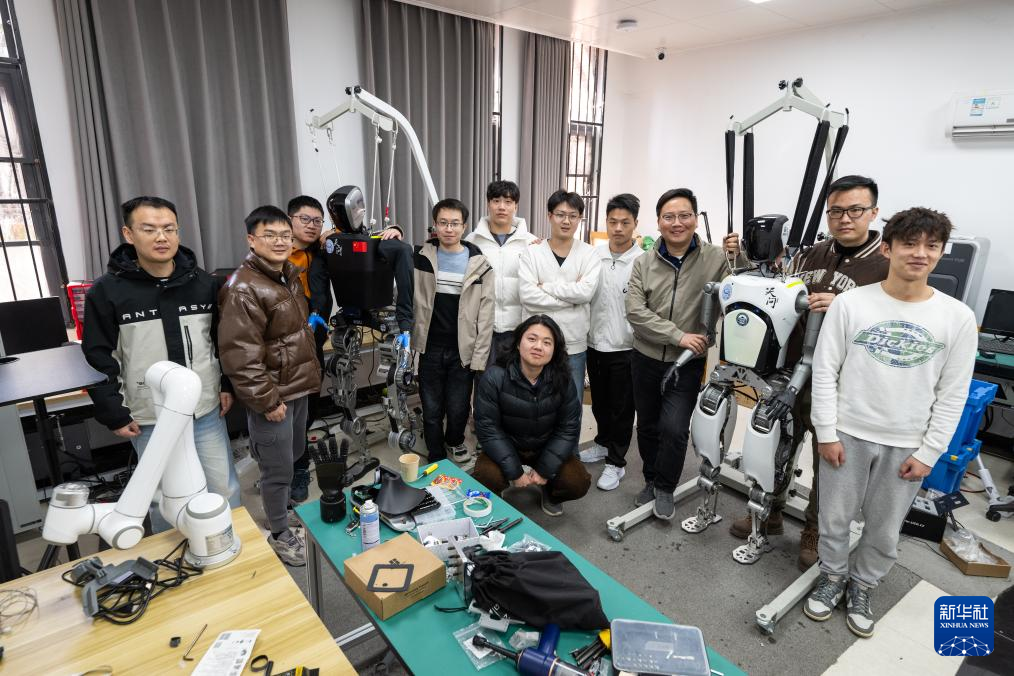 近年来,湖北省加快布局人形机器人领域,依托省内高校院所的人才优势和创新体系优势,组织武汉大学、华中科技大学等参与人形机器人相关项目研发,集中推出“天问”“劳动者”“荆楚”等一系列人形机器人。其中,一批青年人才成为研发团队中的骨干力量,从在读硕士、博士到博士后,他们不仅是人形机器人技术突破的执行者,还推动实验室成果与企业需求对接,发挥出新生代科研力量的向“新”力。新华社记者 杜子璇 摄