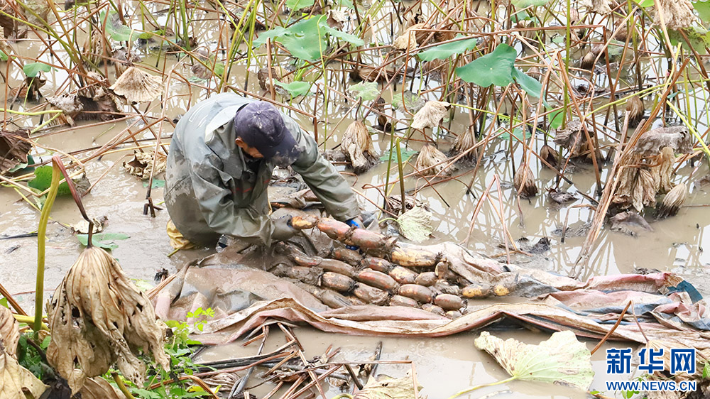 9月25日,武汉市金水祺良农副产品有限公司采收莲藕。(新华网发 陈雪莹摄)