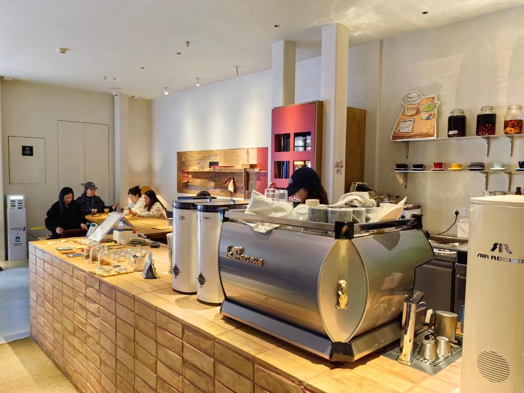 在主街一侧,Topia咖啡馆的灰砖墙总能引得行人驻足拍照。店内陈设简约雅致,浅木色桌椅搭配斑斓布艺杯垫,复古韵味扑面而来。整面落地窗将街景尽数纳入,午后的阳光穿过玻璃,宛如一幅流动的光影画卷。