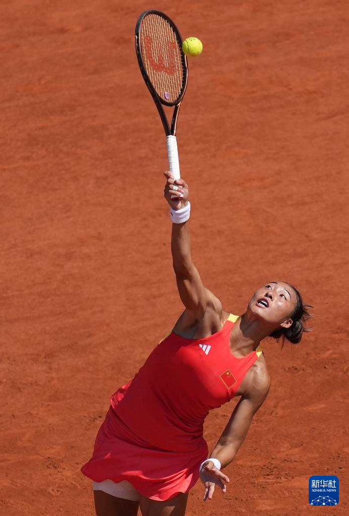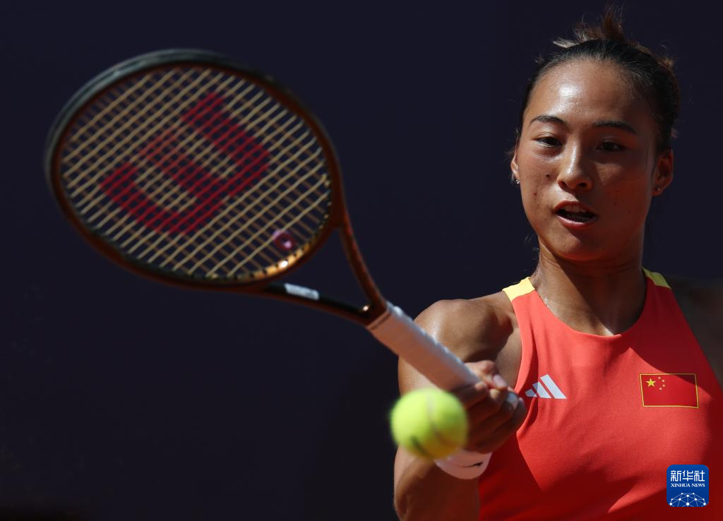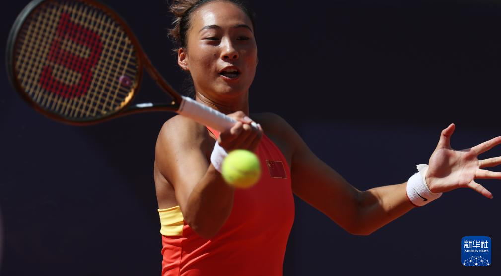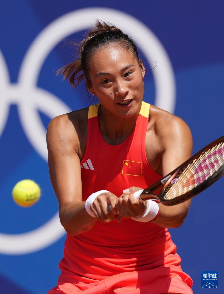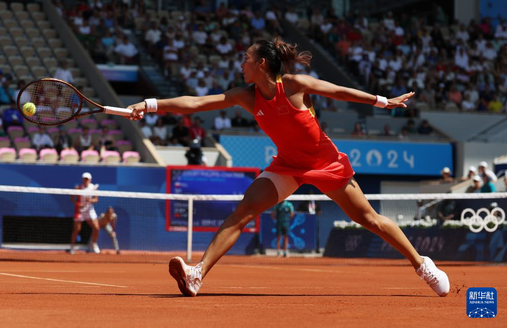 8月1日,郑钦文在比赛中。新华社记者 万象 摄