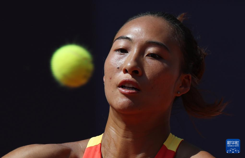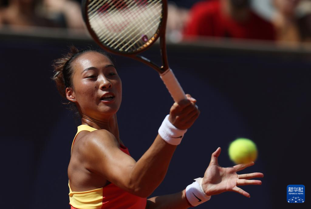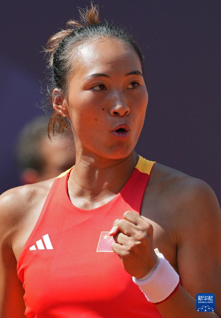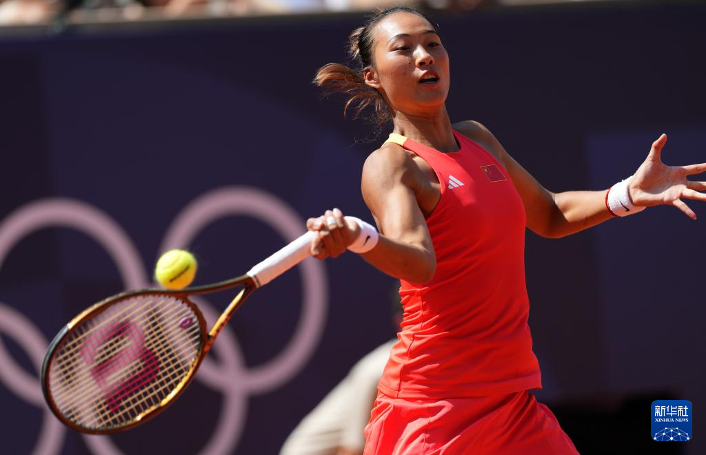 8月1日,郑钦文在比赛中。新华社记者 万象 摄