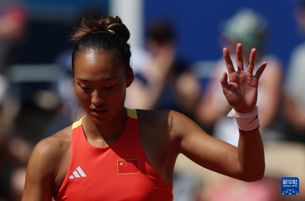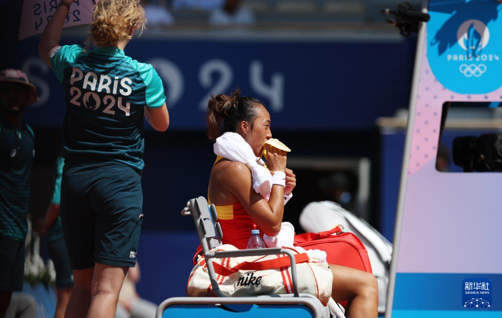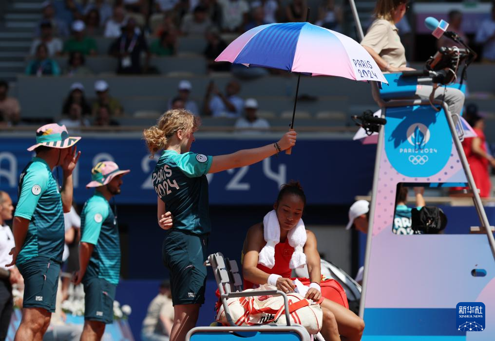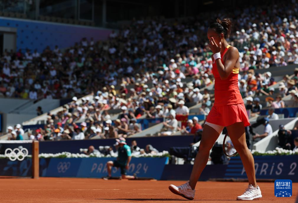 8月1日,郑钦文在比赛间隙。新华社记者 高静 摄