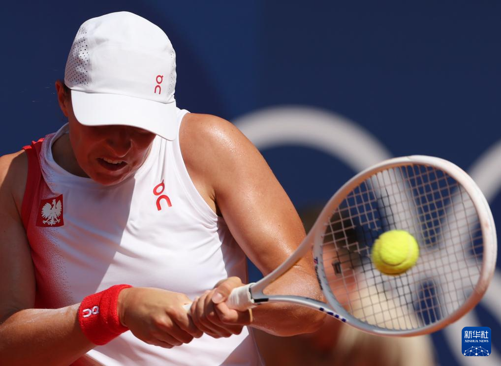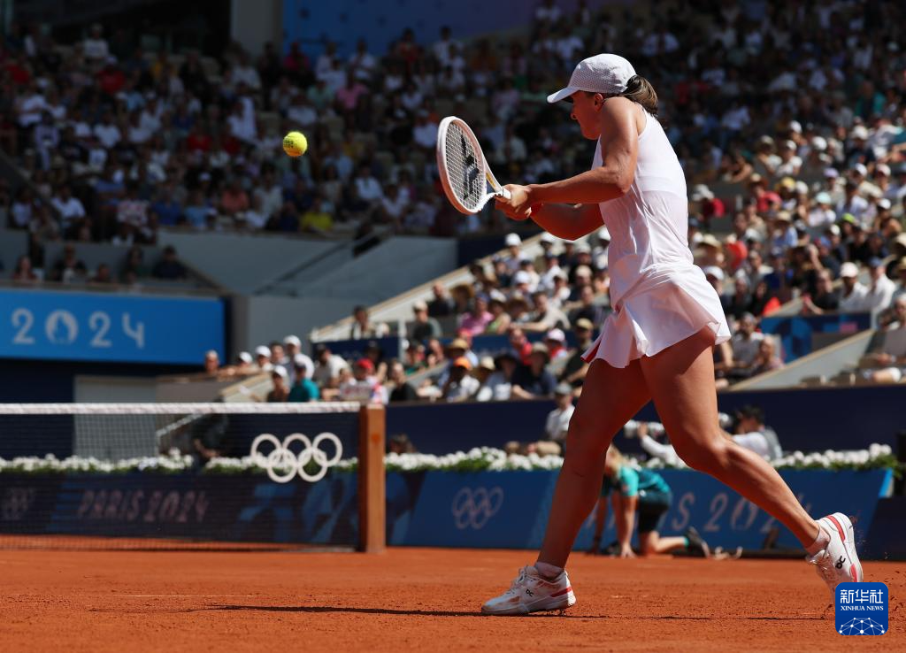 8月1日,斯维亚特克在比赛中回球。新华社记者 高静 摄