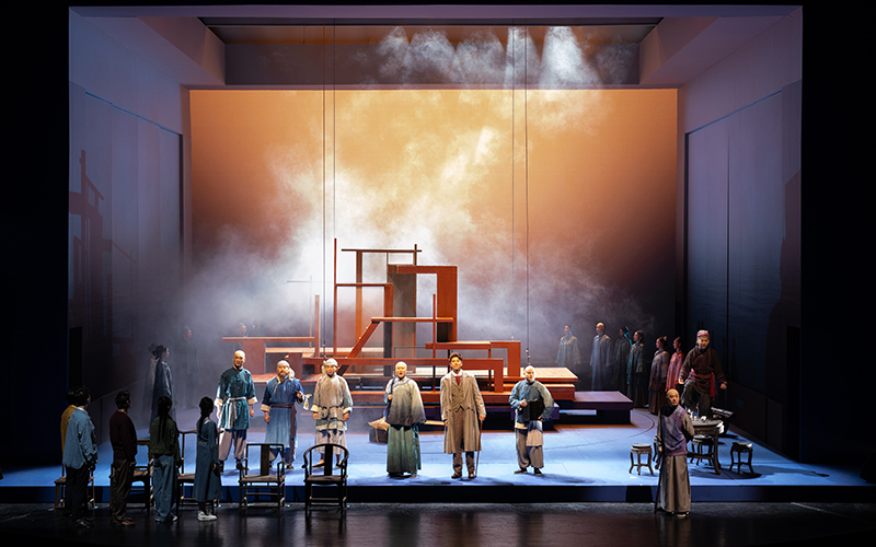 在话剧《北上》的舞台上,观众将看到运河沿岸多座重镇的标志性风貌,感受运河流域绵延至今的文化魅力:杭州的灵动、扬州的清丽、淮安的古朴等等不一而足,位于聊城的光岳楼承载着古今两代人的真情回忆,及至客船行到通州,全剧的庄重、肃穆与波澜壮阔的情感,也到达了顶点。