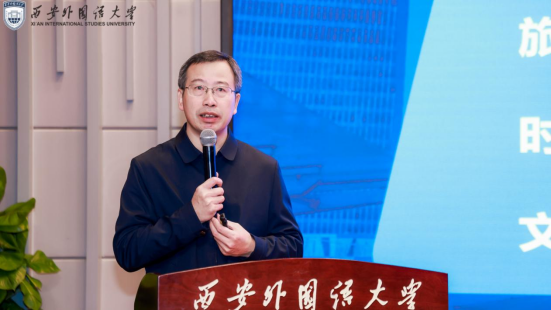 西安外国语大学校长吴耀武发表主旨报告。图片来源:西安外国语大学
