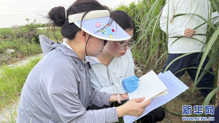 科研团队持续跟踪种苗生长情况。这是研究生们在田间记录脱毒种苗农艺性状数据。新华网发(李佳佳 摄)
