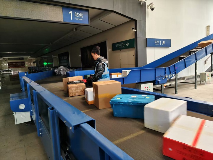 “每天仅需一个半小时的时间,就能完成50吨货物的卸载。”彭建辉说,为提高装卸效率,今年双流西站升级货物传送系统,在二站台及候车室建成带式输送机,实现候车室、地下通道及楼梯斜面、站台面三段结合式联控传输。升级后,不同物流企业的货物可以精准分流,平均装卸时间较去年缩短20分钟,运输效能显著提升。