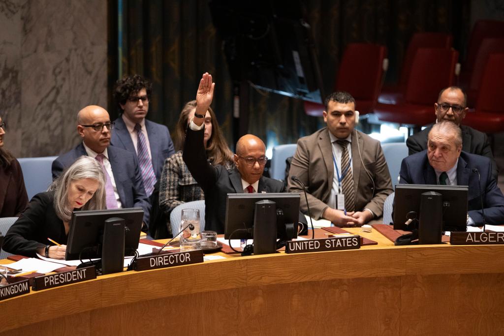 11月20日,在位于纽约的联合国总部,美国常驻联合国副代表罗伯特·伍德(前中)在安理会就决议草案进行表决时投反对票。新华社记者 谢锷 摄