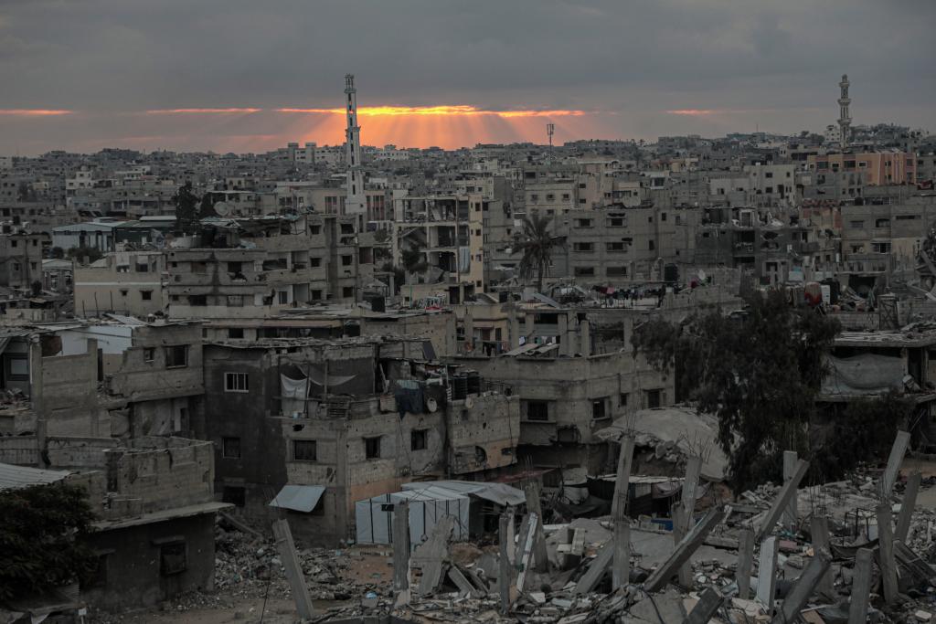 这是10月7日在加沙地带南部城市汗尤尼斯拍摄的朝阳。新华社发(里泽克·阿卜杜勒贾瓦德摄)