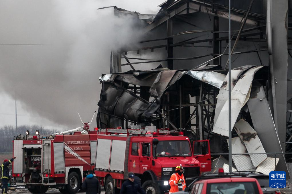 1月26日,消防员在希腊中部色萨利大区特里卡拉市的食品厂爆炸现场工作。新华社发(萨纳西斯·卡利亚拉斯摄)
