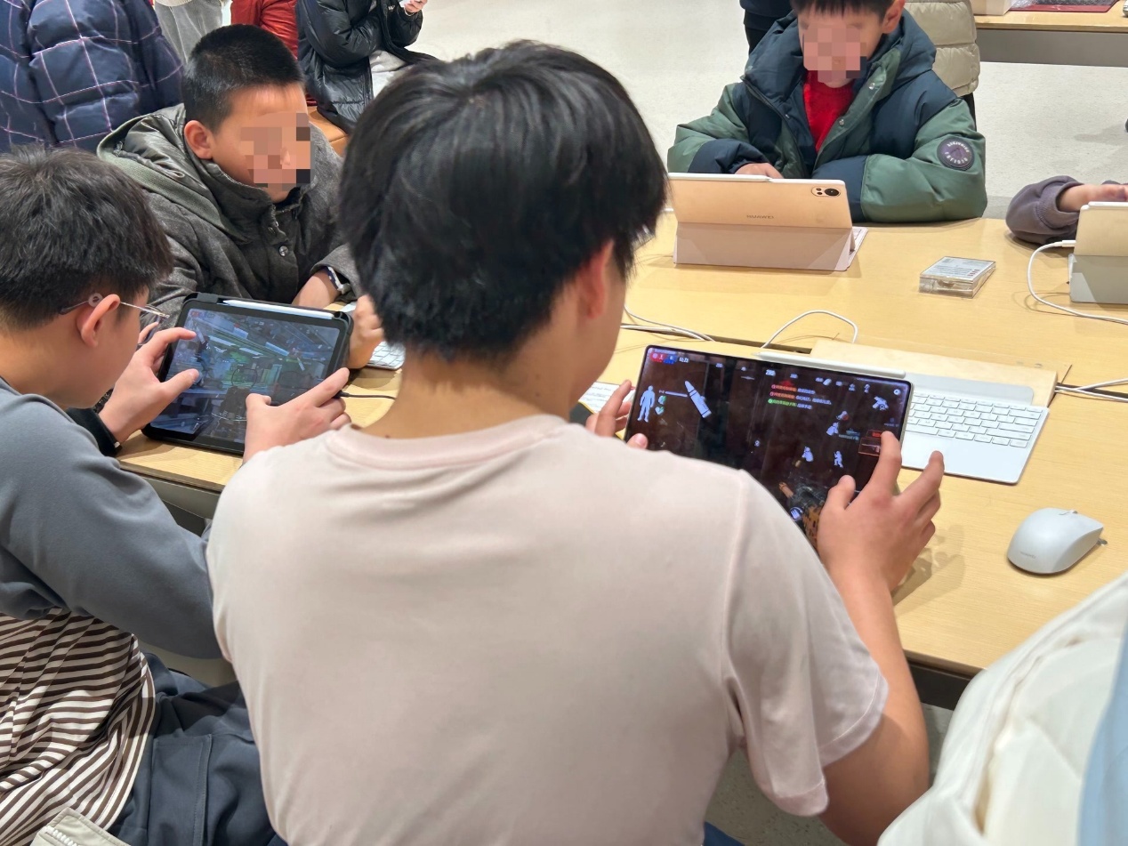 工作日放学时段和周末,手机专卖店里往往会聚集一群学生,把店里的样机当作游戏机,手机店摇身一变成了孩子们的免费“网吧”。对于这种现象,门店一方面说“管不了”,另一方面却偷偷给孩子铺好了玩游戏的路。展示用的样机往往自带“后门”,可以跳过防沉迷限制,孩子们在任何时间来到店里,都能随心所欲畅玩无阻。