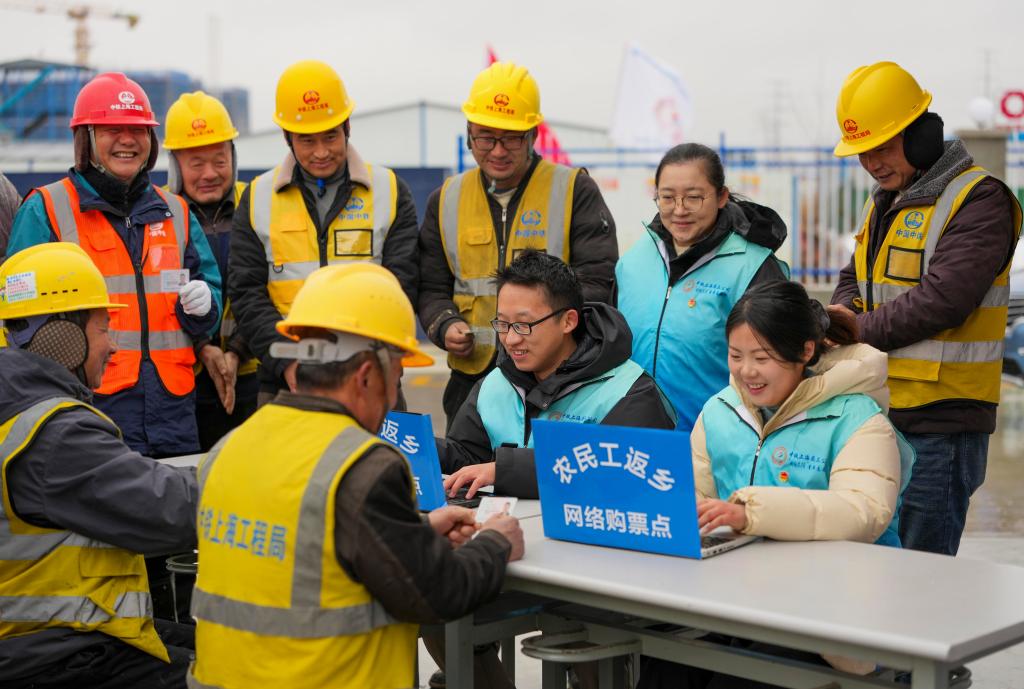 1月19日,春运首日火车票开始发售。中铁上海工程局的青年志愿者开展“关爱农民工·情暖返乡路”志愿服务活动,帮助农民工订购春运火车票。