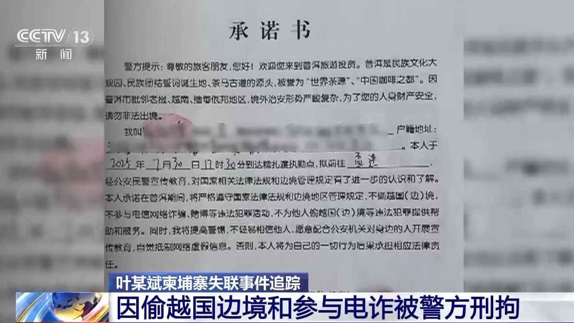 2026年1月19日,江西铅山县公安局通报,此前赴云南旅游后失联并传言在柬埔寨“被胁迫”的青年叶某斌、欧阳某某,已因偷越国(边)境及实施电信网络诈骗被依法刑事拘留。