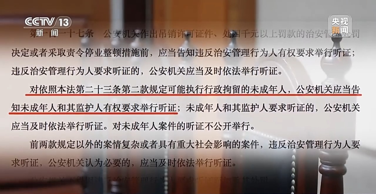 值得注意的是,新修订的《治安管理处罚法》,在降低拘留年龄的同时,也更注意保障未成年人权益,进一步完善了涉未成年人办案程序,尤其增加规定,公安机关应当告知未成年人和其监护人,有权要求举行听证。