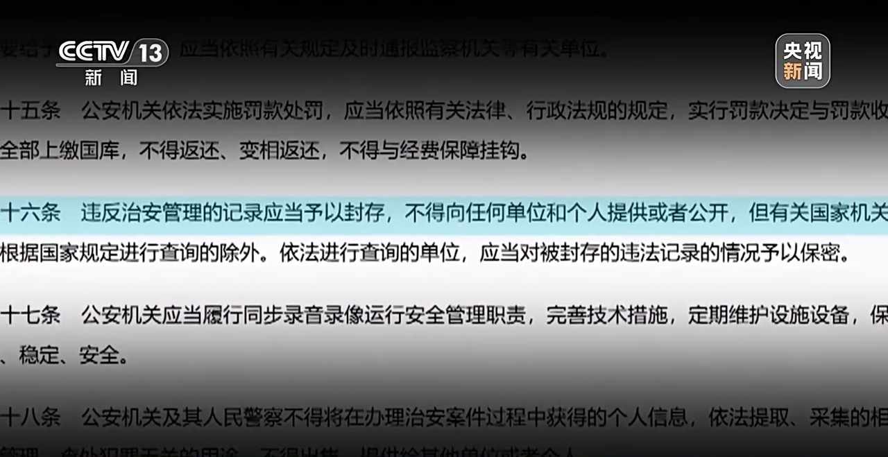 来自国家统计局的数据,2023年,全国公安机关查处的治安案件数,达788万多起,近五年来,这个数据每年也都在800万起左右。而与这个数字相关的,是一个非常庞大的群体,他们会因为受到行政拘留、罚款等处罚,而留下治安违法记录。在现实中,这样的记录,可能会影响到个人升学、求职甚至评优晋级等各个方面,可以说“一朝犯错,困扰终身”。因此,在这次《治安管理处罚法》修订中,“违反治安管理的记录应当予以封存,不得向任何单位和个人提供或者公开”的规定,就引起了极大的关注。同样是回应公众关切,法律的修订,可以说既是对公民个人隐私权、人格权的一种保护,也是对执法部门管理的规范。而此次《治安管理处罚法》修订,执法程序的优化和公民权利的保障,也是重点。