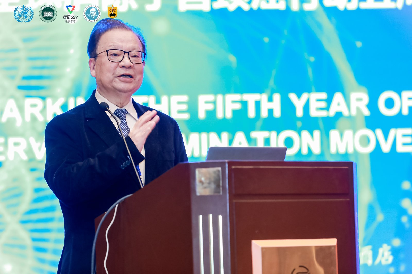作为活动发起者与策划者,中国医学科学院北京协和医学院群医学及公共卫生学院特聘教授、世界卫生组织全球消除宫颈癌专家工作组成员乔友林教授介绍了五年来中国在宫颈癌防控方面取得的进展和成效,并展示了全国各地点亮城市地标的盛况。