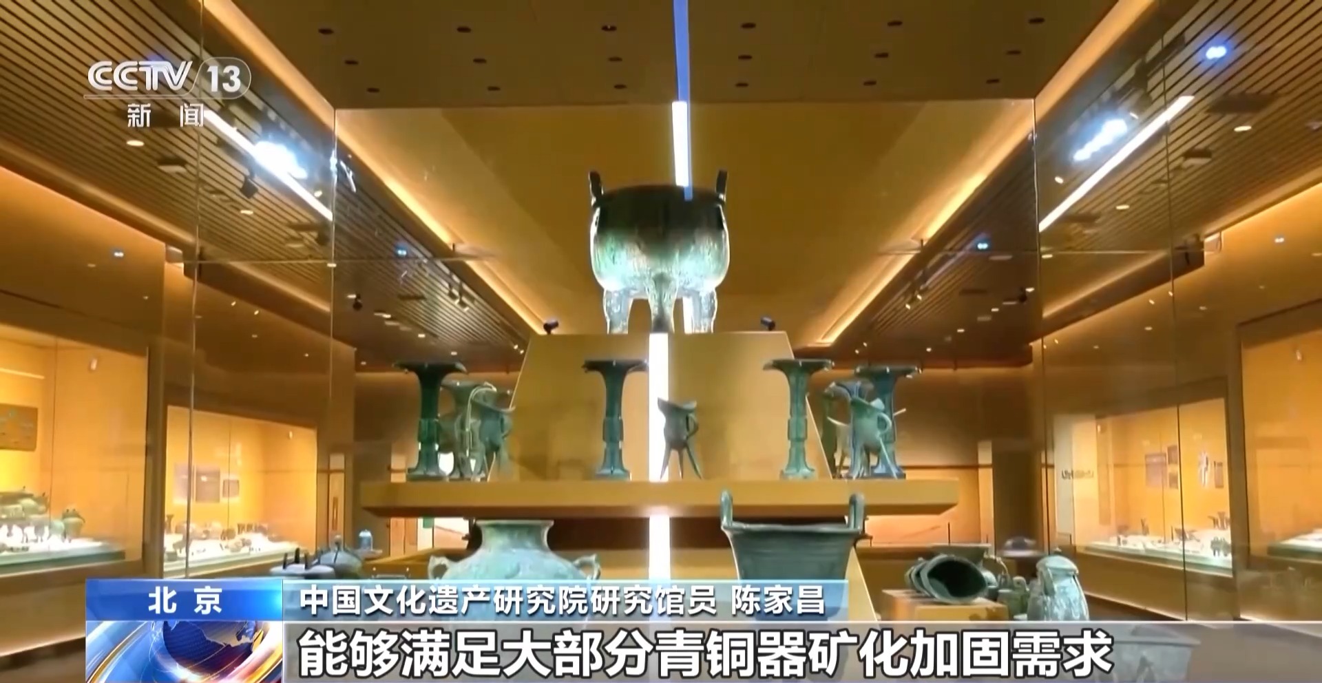 中国文化遗产研究院研究馆员陈家昌:特别是围绕精细除锈,以及矿化青铜器渗透加固,我们做的模拟试块,能够渗透到青铜器锈蚀处6个毫米左右,真实青铜器修复大概就是有个半厘米左右,能够满足大部分青铜器矿化加固需求。