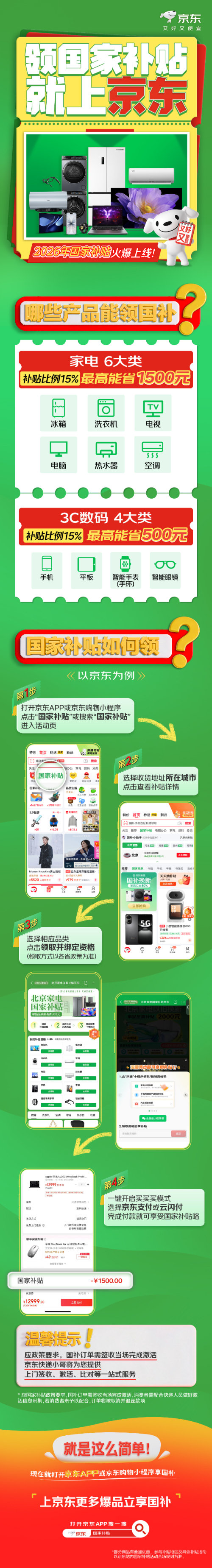 此外,京东MALL、京东电器城市旗舰店、京东之家、京东家电专卖店等线下渠道等同步展开国补承接。1月1日起,消费者可直接前往就近京东门店,咨询国补导购进行国补核销与下单。