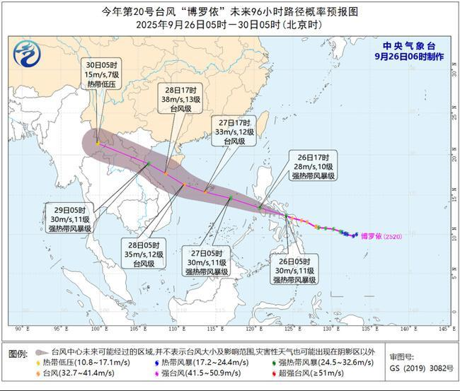 预计,“博罗依”将以每小时30-35公里的速度向西偏北方向移动,今天白天穿过菲律宾中部后,于27日凌晨进入南海东部海域,之后向西北方向移动,强度再次增强,并向海南岛南部海域靠近。