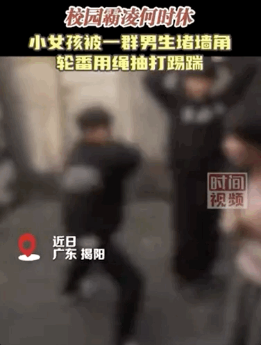 广东揭阳,一名女孩被一群同龄男生围堵在墙角,用绳子抽打和用脚踢踹。当地派出所18日表示,对这一案件已处理完毕。