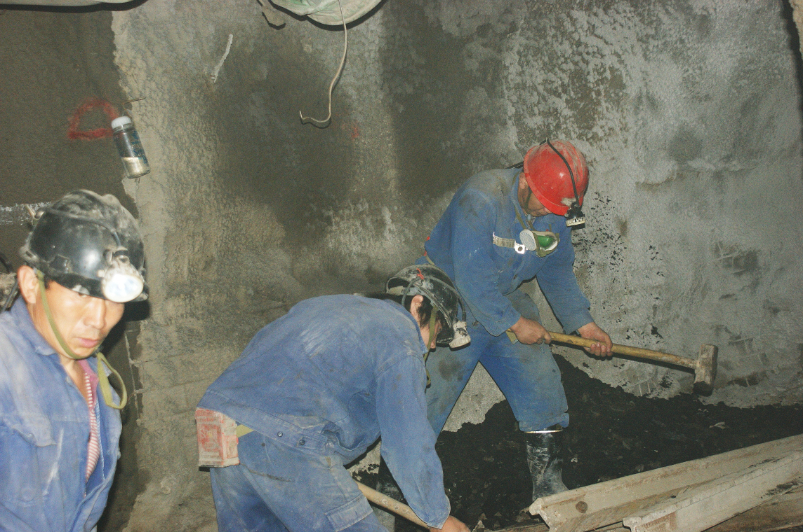 图为大南湖一矿职工进行巷道施工,2010年1月15日摄。